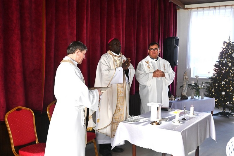 Afrického biskupa prijali v centre tradične, chlebom a soľou. Nasledovala Svätá omša, ktorú slúžili spoločne so slávnickým pánom farárom Petrom Jankechom. Zúčastnili sa jej klienti aj zamestnanci zariadenia. Svoju kultúru obe strany odprezentovali zábavnou formou. Biskup Dominik Kimengich zahral a zaspieval pieseň pri ktorej v závere vyzval publikum aby sa pridalo so slohou „Hakuna matata“. Klienti sa hosťom revanšovali divadelným predstavením. Ocenený bol talent a odvaha všetkých zúčastnených. Pri spoločnom obede prebiehala bohatá diskusia na rôzne témy. „Ich návšteva a zároveň Božie požehnanie, ktoré priniesli je pre nás veľkým darom a zážitkom. Budeme z nej čerpať po celý život,“ dodáva Martina Mutalová, riaditeľka Centra sociálnych služiieb SLOVEN.